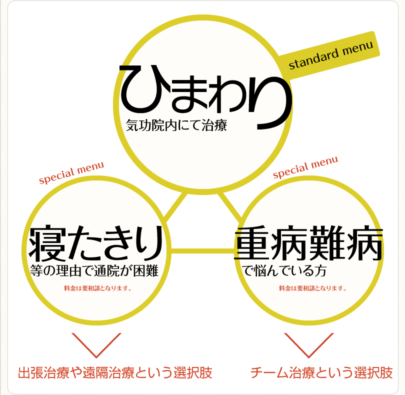 はたまたガンや難病なのか・・・ 治療に要する時間や頻度はそれによって違ってきます。